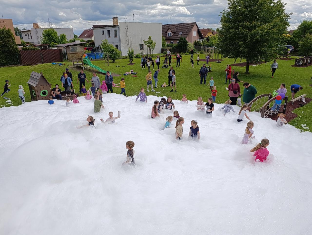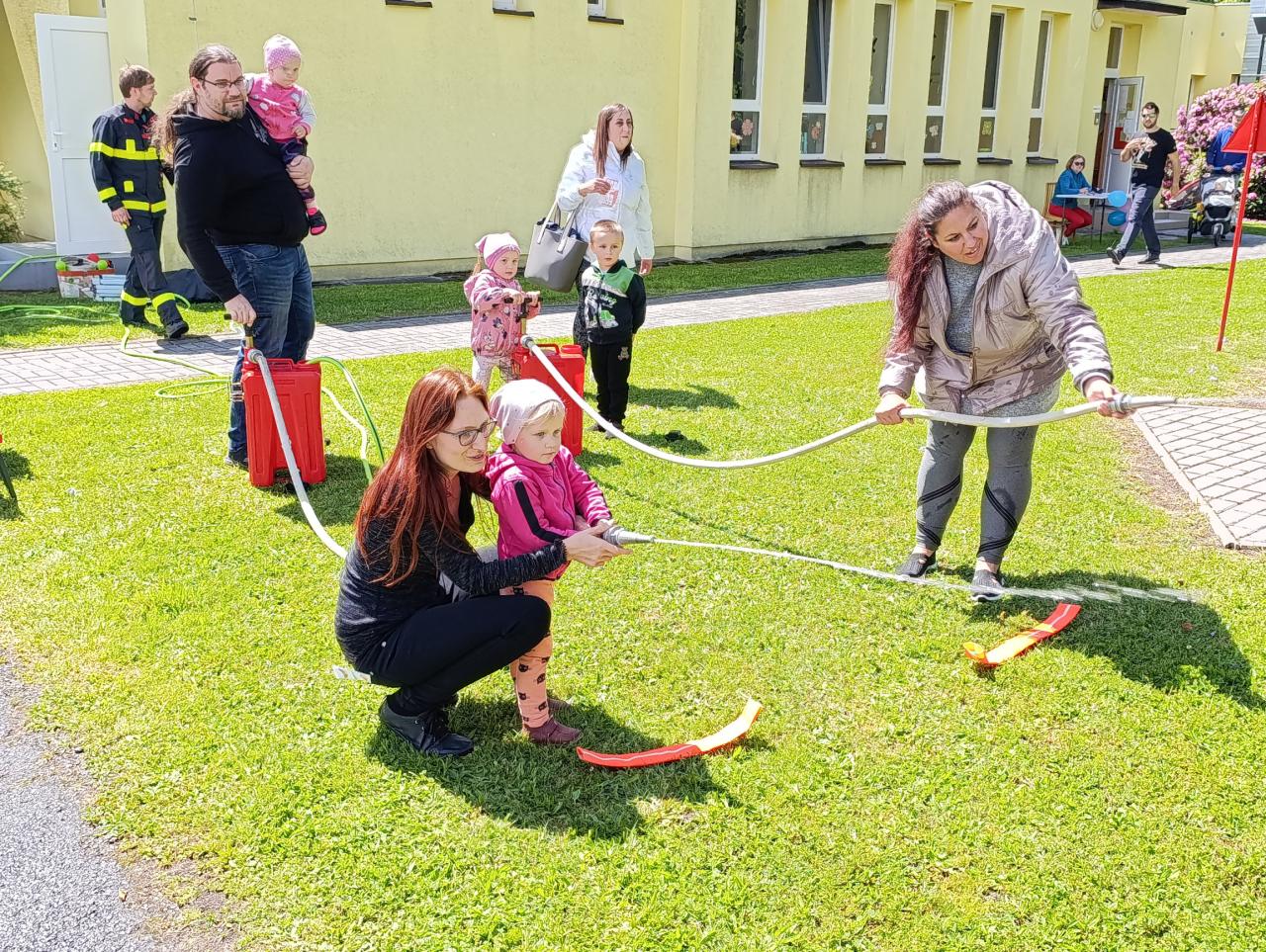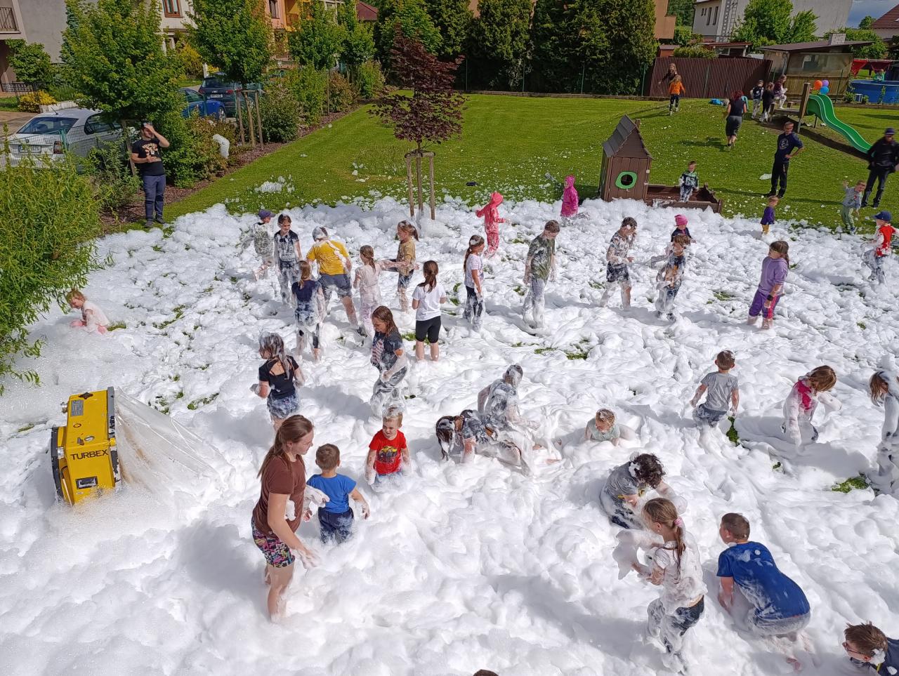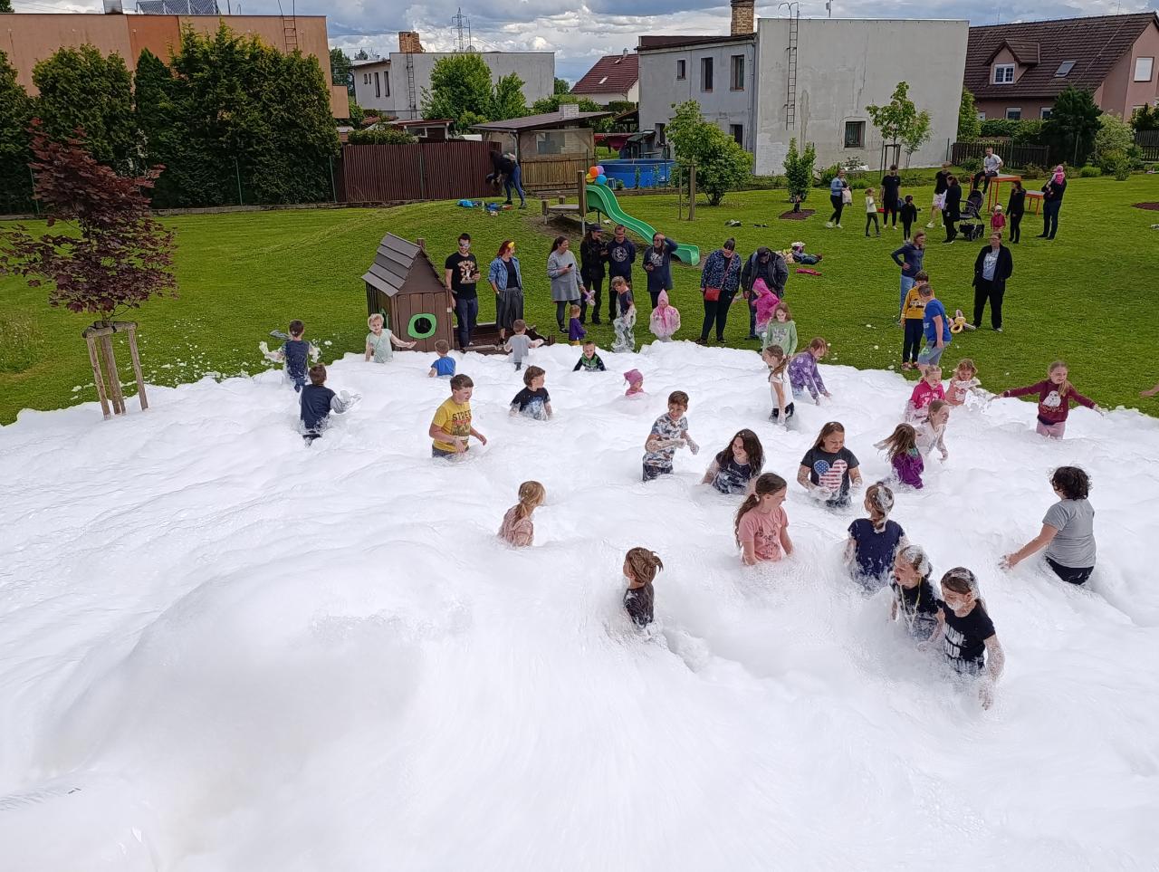Téměř 90 dětí vyzkoušelo svůj um a hbitost se džberovými stříkačkami, na prolézačkách, v tunelu či na provazových chůdách. Ruce procvičily při vyrábění z balonků či "krmení" Boba a Bobka mrkví. Při ukázce freestyle parkuru se nejednou tajil dech. Nechyběla zmrzlina a pikador. Za splnění všech sportovních úkolů každý získal medaili. Vyvrcholením bylo řádění v pěně, kterou nám vyrobili hasiči z JETE.
