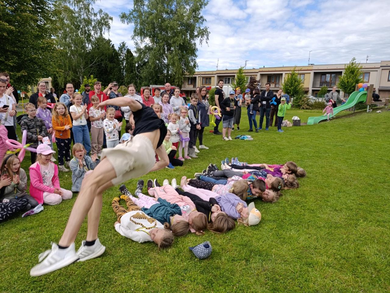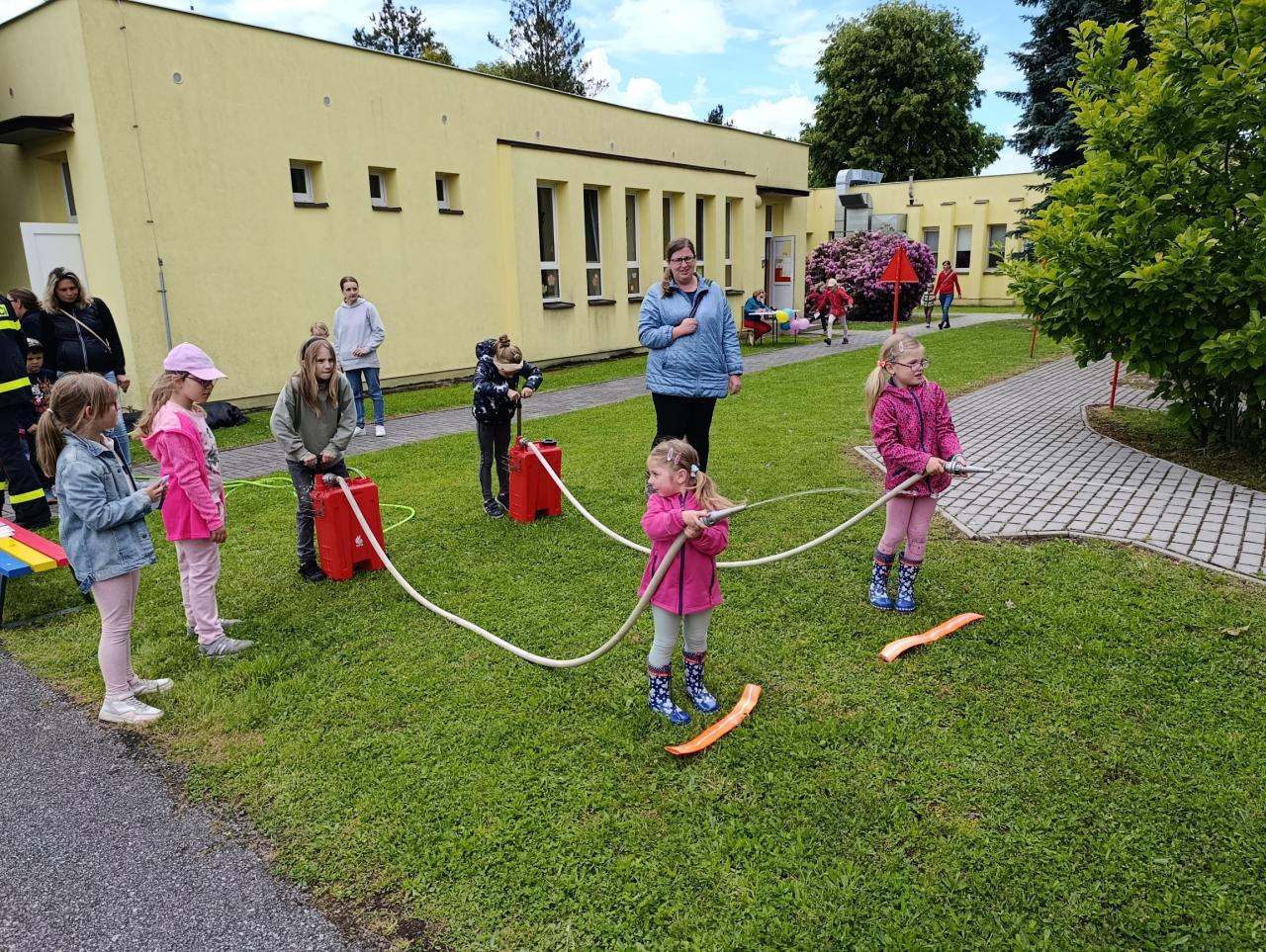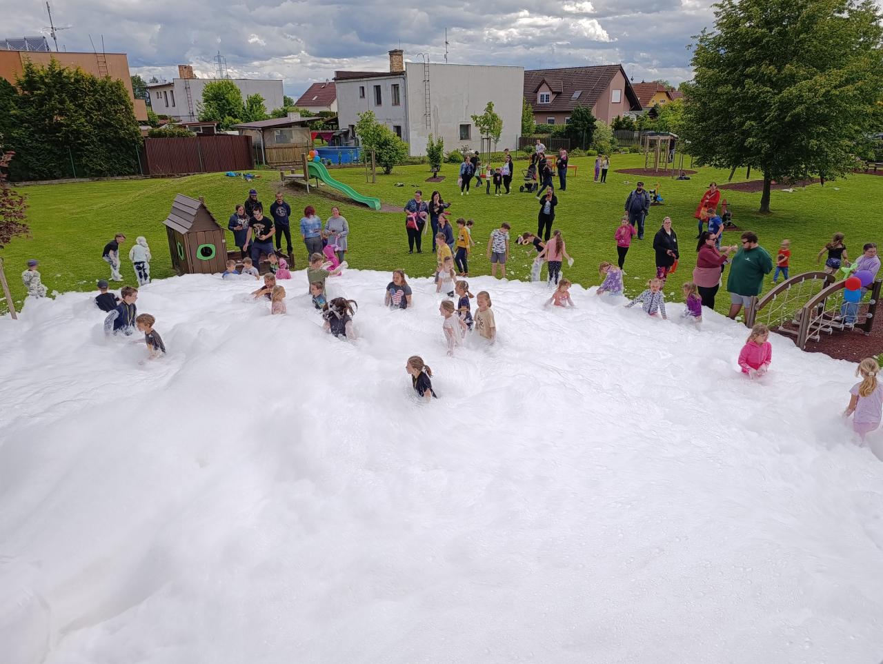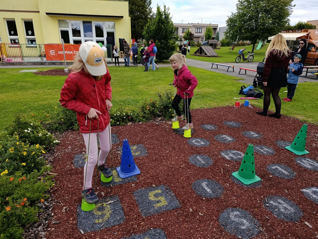 Téměř 90 dětí vyzkoušelo svůj um a hbitost se džberovými stříkačkami, na prolézačkách, v tunelu či na provazových chůdách. Ruce procvičily při vyrábění z balonků či "krmení" Boba a Bobka mrkví. Při ukázce freestyle parkuru se nejednou tajil dech. Nechyběla zmrzlina a pikador. Za splnění všech sportovních úkolů každý získal medaili. Vyvrcholením bylo řádění v pěně, kterou nám vyrobili hasiči z JETE.