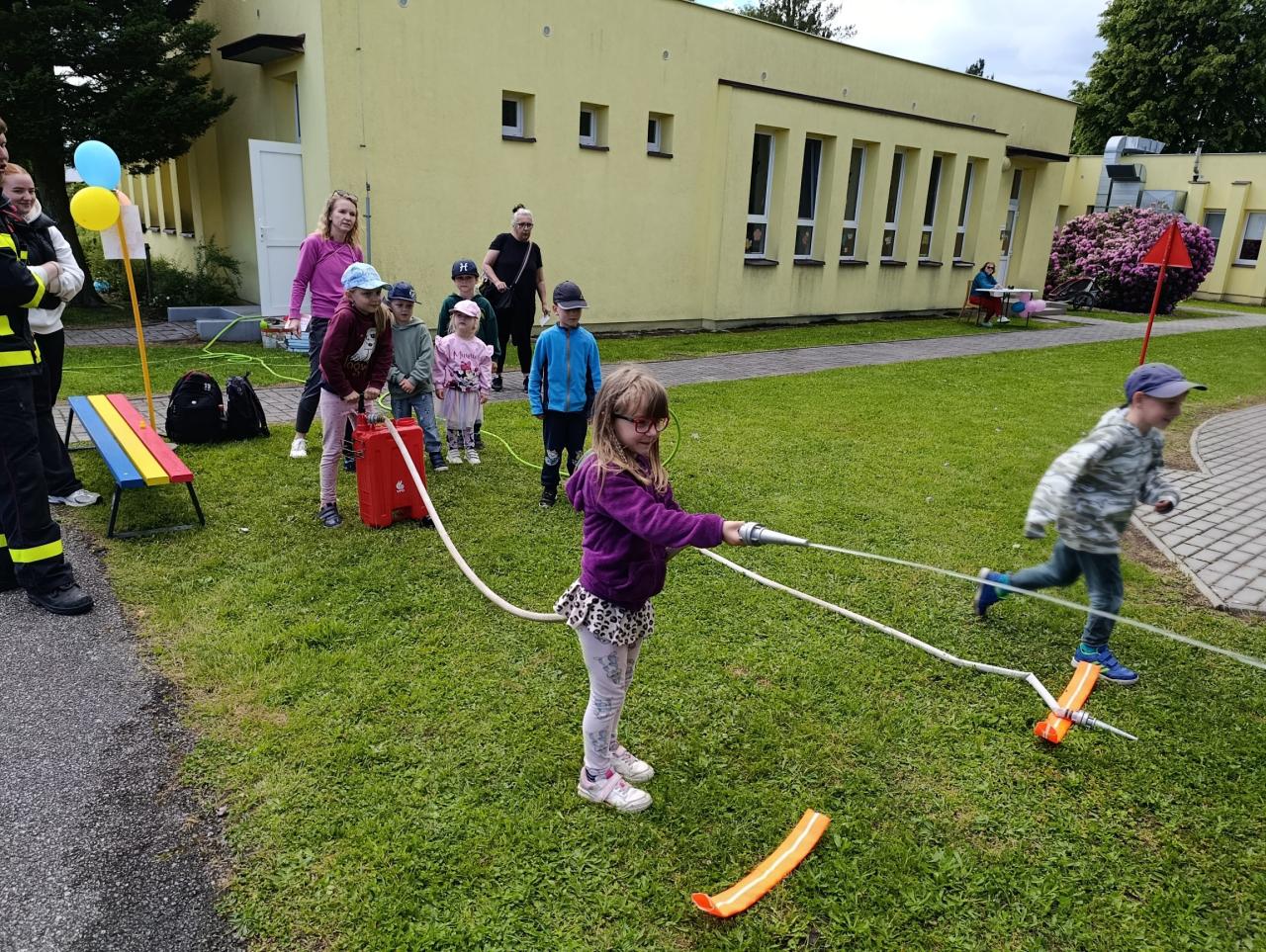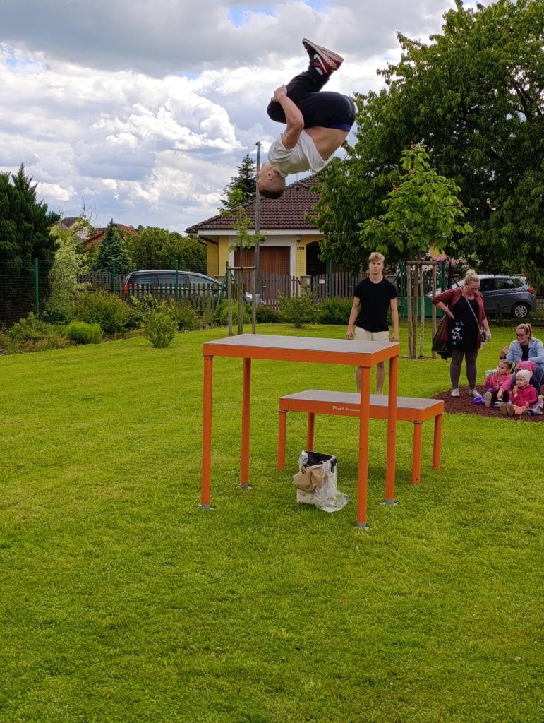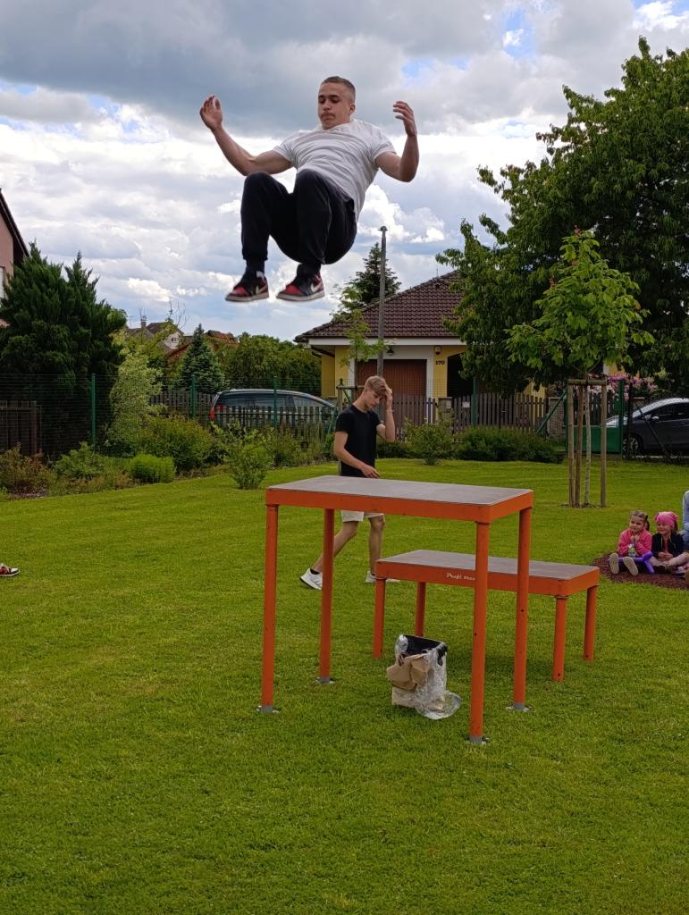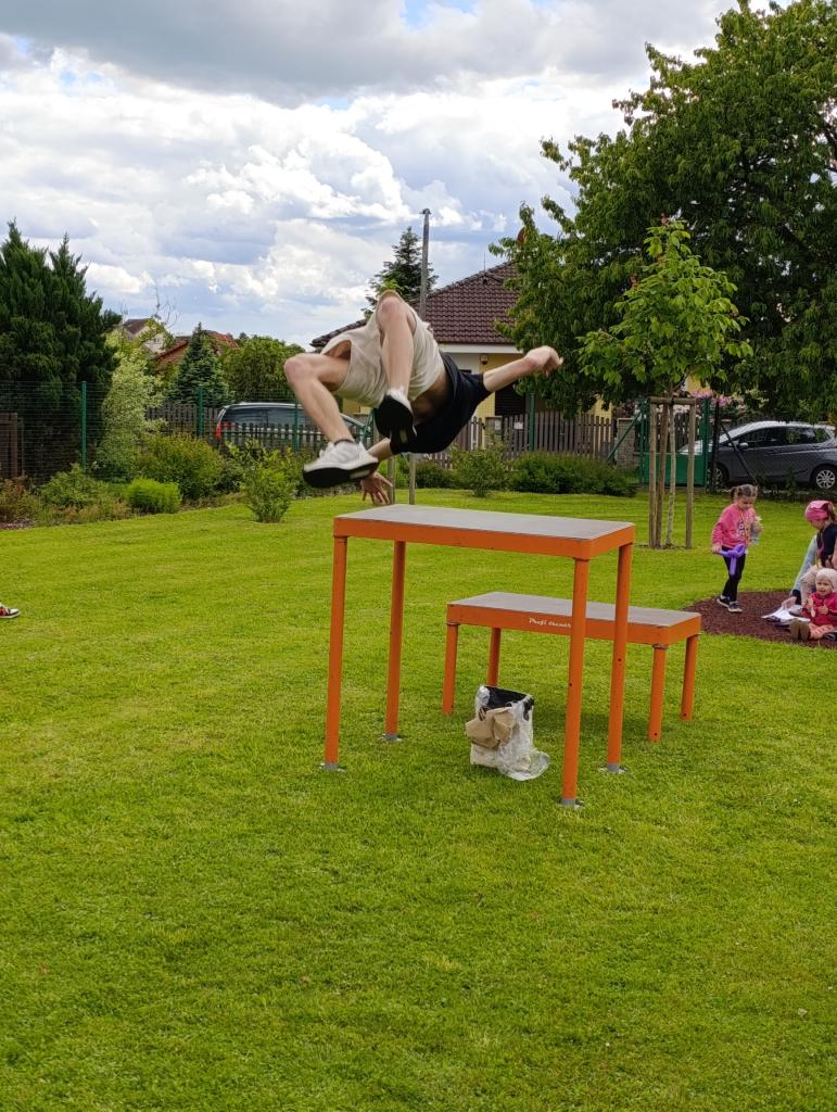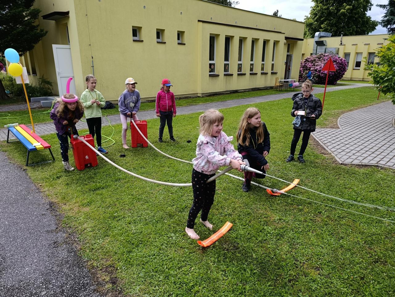 Téměř 90 dětí vyzkoušelo svůj um a hbitost se džberovými stříkačkami, na prolézačkách, v tunelu či na provazových chůdách. Ruce procvičily při vyrábění z balonků či "krmení" Boba a Bobka mrkví. Při ukázce freestyle parkuru se nejednou tajil dech. Nechyběla zmrzlina a pikador. Za splnění všech sportovních úkolů každý získal medaili. Vyvrcholením bylo řádění v pěně, kterou nám vyrobili hasiči z JETE.