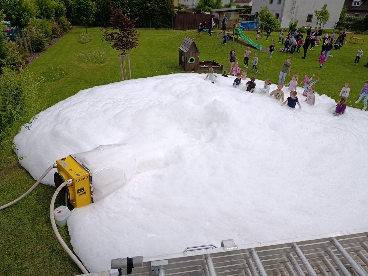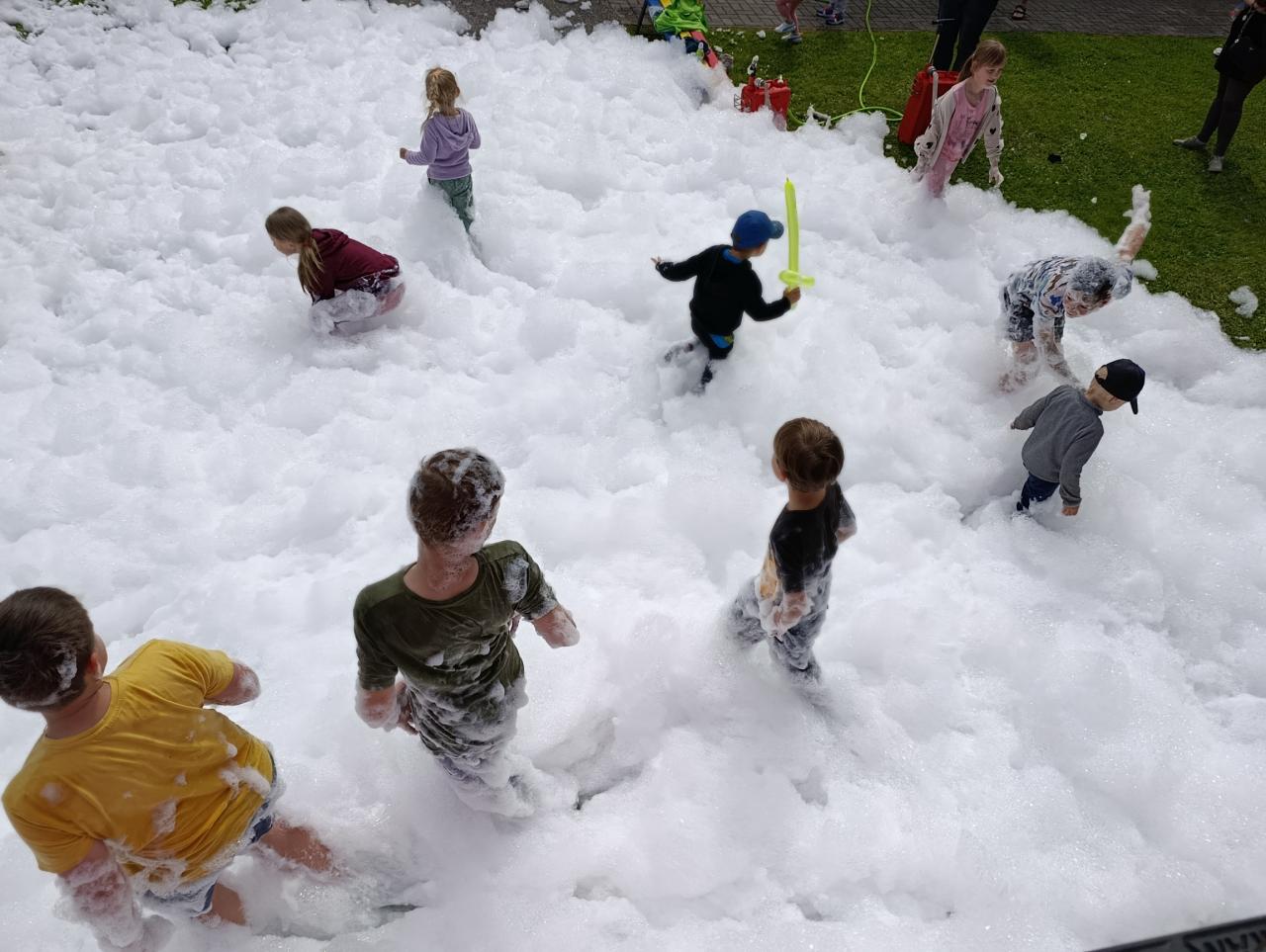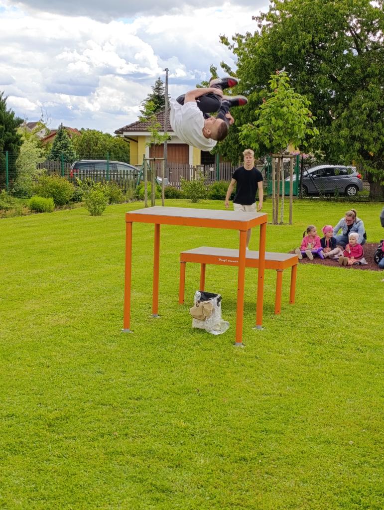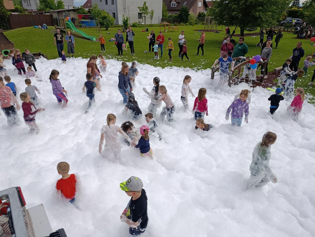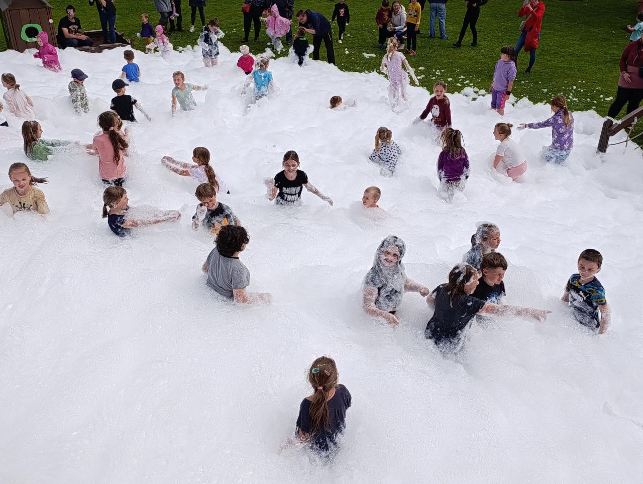 Téměř 90 dětí vyzkoušelo svůj um a hbitost se džberovými stříkačkami, na prolézačkách, v tunelu či na provazových chůdách. Ruce procvičily při vyrábění z balonků či "krmení" Boba a Bobka mrkví. Při ukázce freestyle parkuru se nejednou tajil dech. Nechyběla zmrzlina a pikador. Za splnění všech sportovních úkolů každý získal medaili. Vyvrcholením bylo řádění v pěně, kterou nám vyrobili hasiči z JETE.