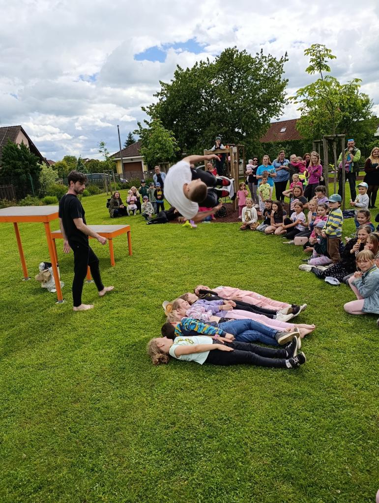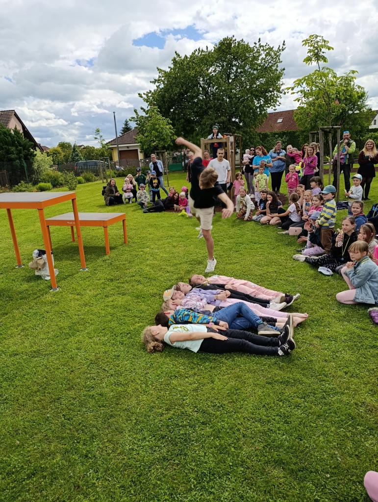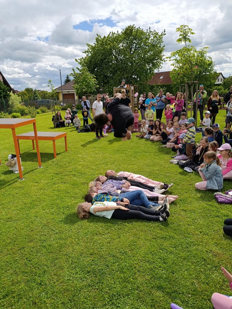 Ve čtvrtek 29. května jsme přichystali dětský den na zahradě mateřské školy. Od rána strašilo počasí, které s odpoledne vcelku umoudřilo.