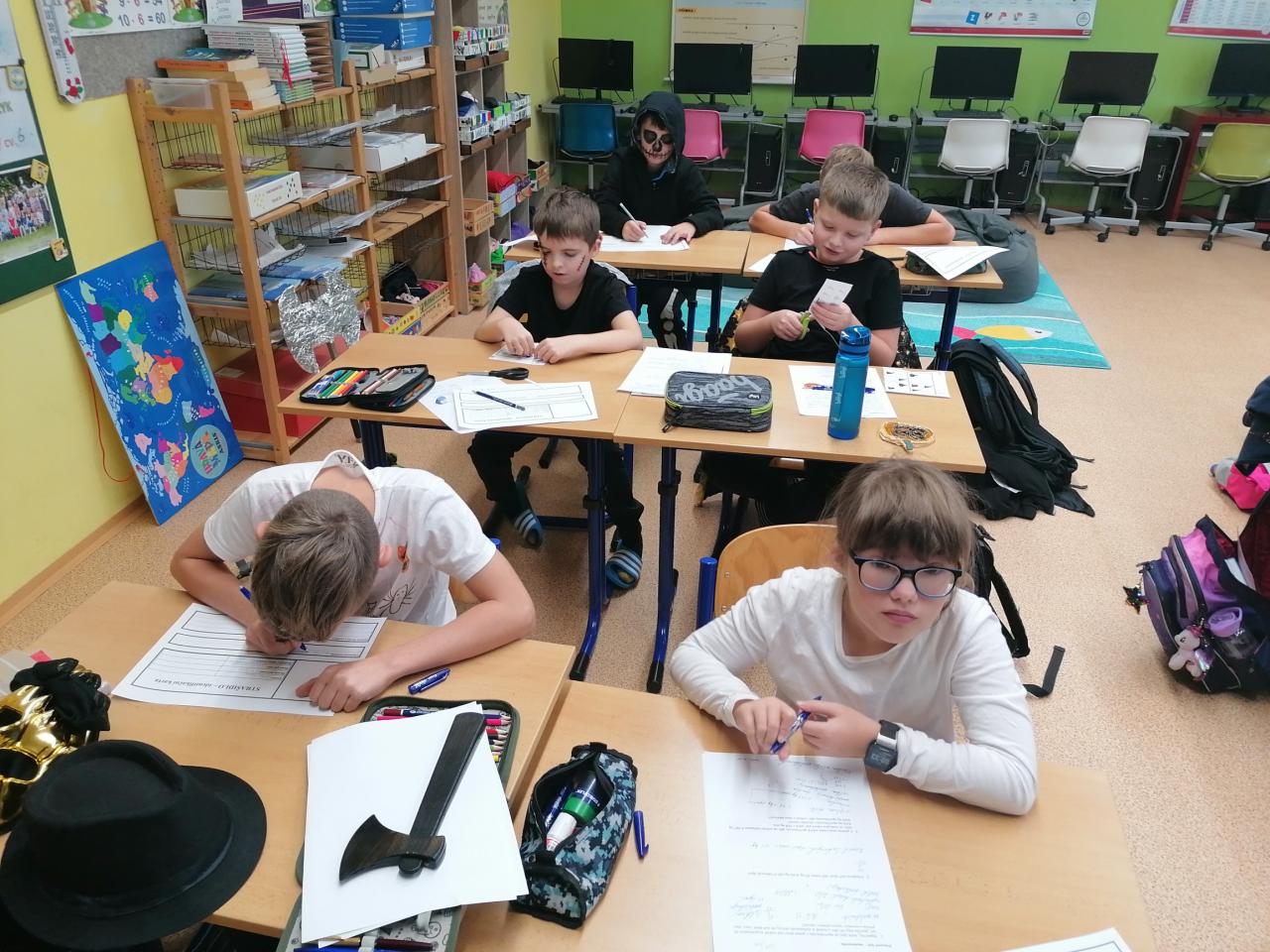 Na Halloween bylo ve škole strašidelně. Zpočátku dne se ještě plnily různé tematické úkoly. V závěru dopoledne již však všechny hrůzostrašné bytosti pouze řádily na halloweenské diskotéce, kde i soutěžily např. ve strašném tanci, pojídání červů či ve vydání nejhrůznějšího zvuku.