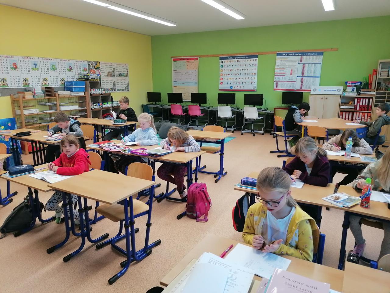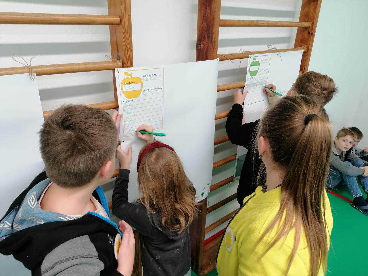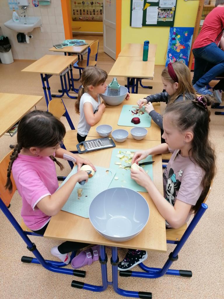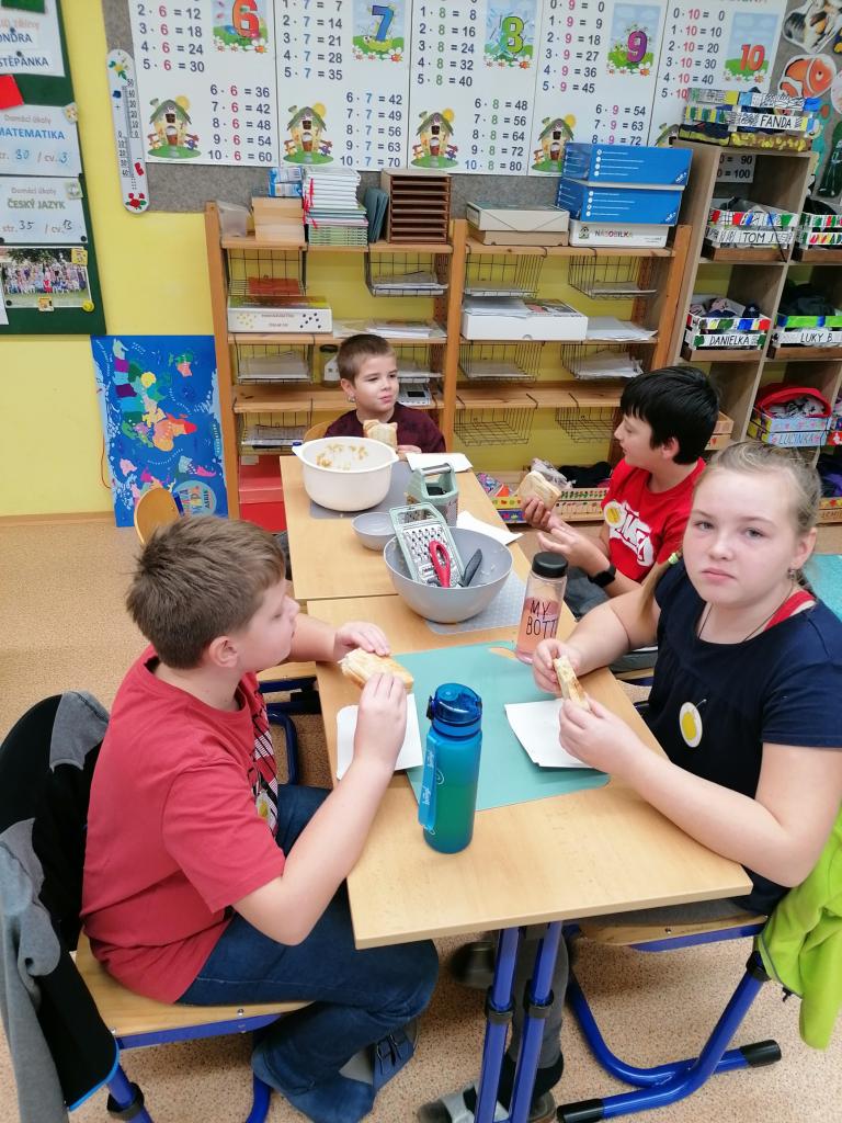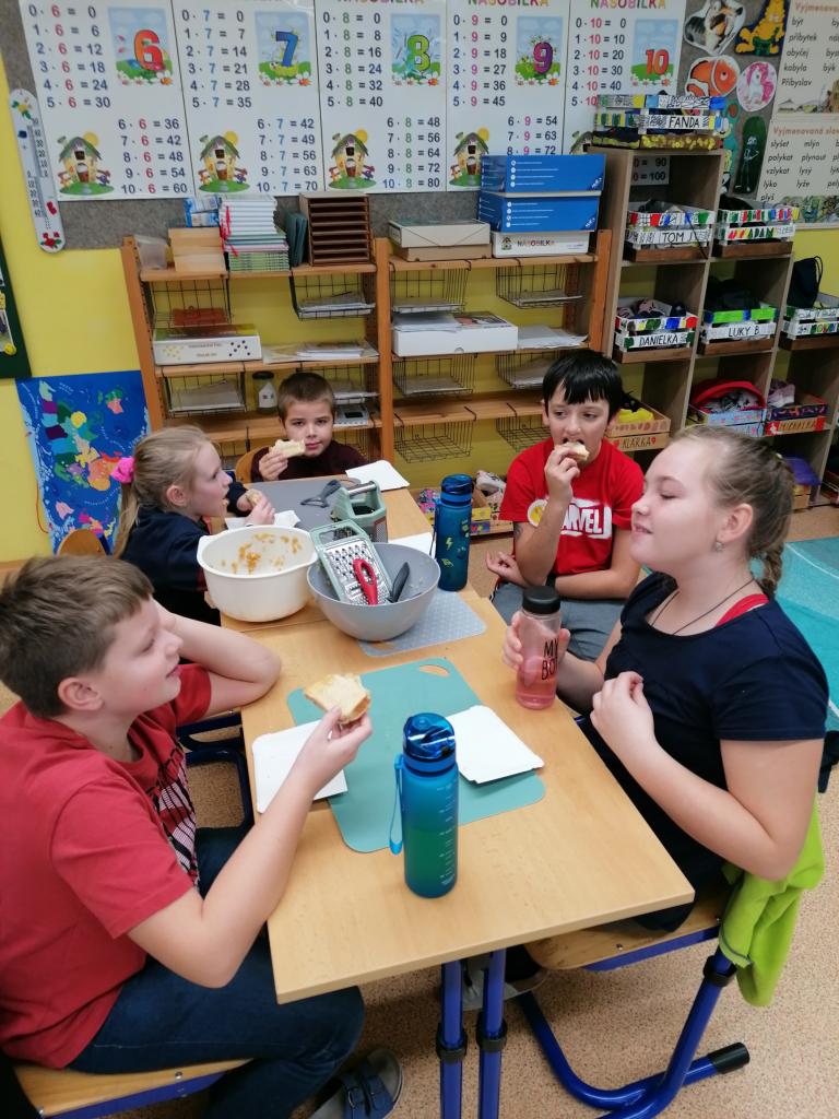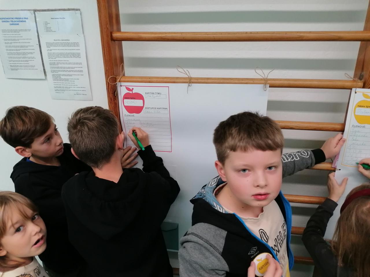 Třídenní projekt "O jablku" byl plný různorodých činností a prolínal se všemi vyučovacími předměty. Žáci byli rozděleni do třech týmů-zelené, žluté a červené jablko. Z řad páťáků měl každý tým svého kapitána a jeho zástupce. Všichni společně pak vymysleli název týmu. Své znalosti žáci uplatnili při úkolech matematických, z českého jazyka či přírodovědy. Nejen při tělocvičných disciplínách byla nutná spolupráce všech členů týmu. Projevit svou šikovnost a zručnost museli při loupání, krájení, strouhání a následném moštování, výrobě křížal či falešného štrůdlu. Kreativita měla prostor při zdobení jablek. Za každý splněný úkol dostal tým část skládačky, ze které v závěru poskládal jablko v barvě týmu. Za splnění všech úkolů získali žáci tašku plnou dobrot. Zvláštní vyhodnocení pak měl počet nasbíraných prémiových smajlíků.